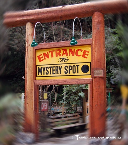 Калифорния славится не только своими гигантскими секвойями, лесом красного дерева, Кремниевой долиной. Здесь есть место, в котором даже самый отъявленный яйцеголовый представитель Науки задумчиво сдвинет к носу очки и начнет копаться в поисках естественного объяснения феномена Таинственного пятна и хижины на ее краю. Таинственное пятно. Здесь все не так как мы привыкли видеть: Хижина под углом, покосившаяся так, что кажется что она вот-вот упадет. Внутри можно поставить половую метлу под углом 45 градусов и она не будет падать. А можно стать самому вместо метлы - эффект феномена никуда не исчезнет. Если бросить мяч на пол, то он покатится не вниз, согласно физическим законам, а наоборот, вверх. Даже на имеющемся турнике нельзя подтягиваться нормально - вертикально вверх - только под углом. А вот старое фото, на котором изумленная женщина пытается налить молока в стакан. Приборы здесь не хотят работать, форма деревьев необычна, тем более что растут они под углом к поверхности. Кстати,