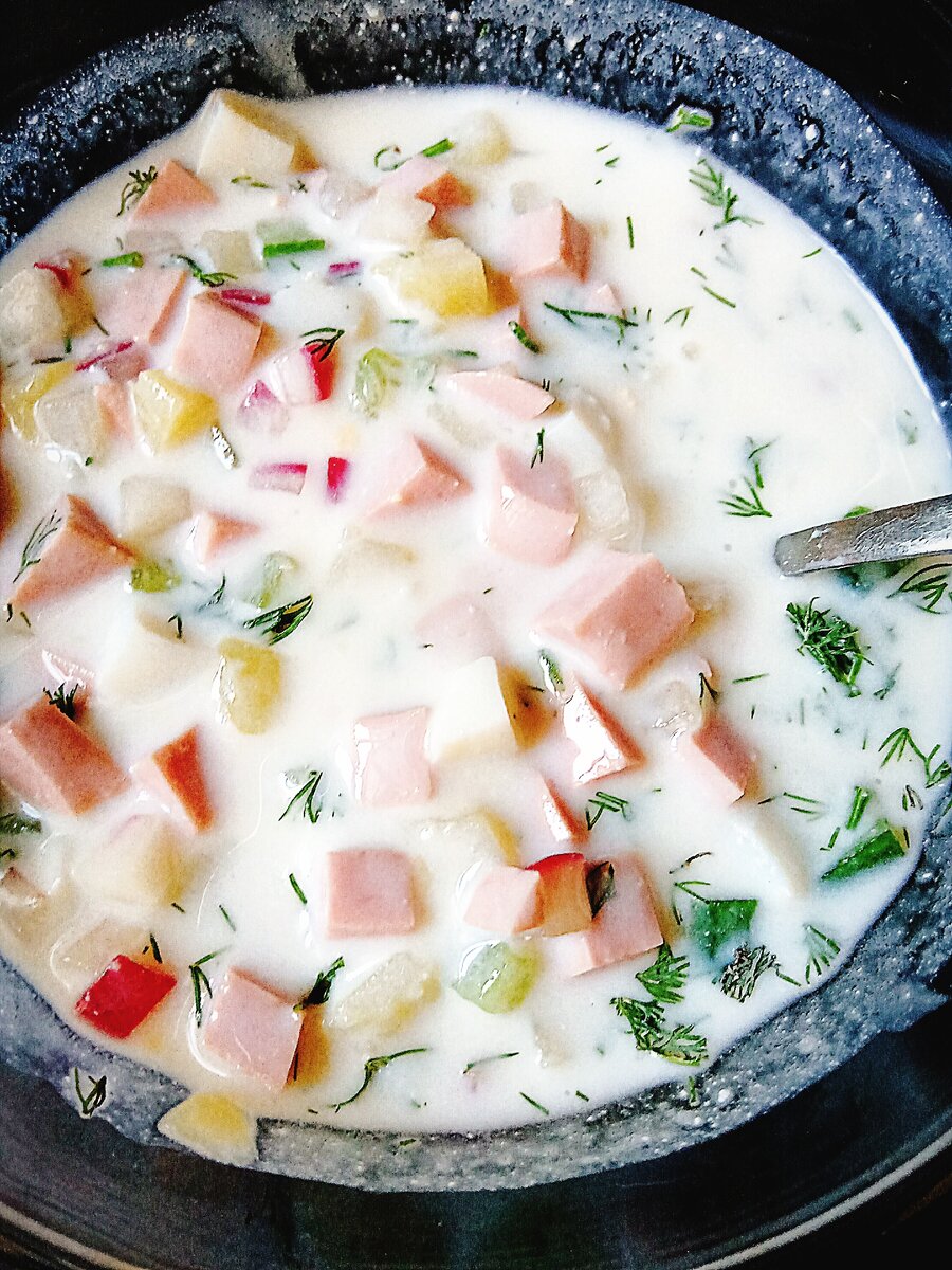 Ингредиенты: Редис ~ 200 гр. Картофель 🥔 - 4 шт. Огурец 🥒 - 1 шт. Яйца 🥚 - 2 шт. Колбаса 🍖 - 200 гр. Зелень 🌿 Соль Кефир Уксус Способ приготовления: Варим картошечку, яйца. Крошим все ингредиенты на маленькие кубики и смешиваем. Добавляем зелень и солим по вкусу. Можете сделать с кефиром, как у меня или с квасом, на свой вкус. Если делать с кефирчиком, то я добавляю ещё немного уксуса и чистой водички. Приятного аппетита! #окрошка #окрошка рецепт #летние рецепты #готовим дома #вкусно и просто