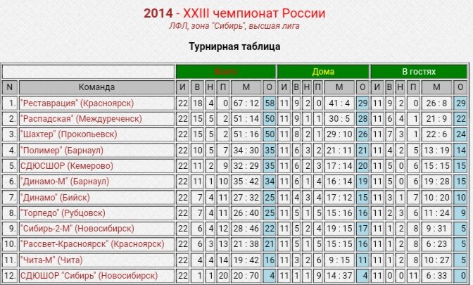 Всем привет, друзья! Пока весь русский футбол на паузе, мы решили рассказать вам историю ФК «Полимер»(Барнаул) в чемпионатах ЛФЛ. 2014 ГОД Сегодня мы расскажем о "XXIII чемпионате России. ЛФЛ. Зона: Сибирь. 2014 год" 2014 год для Полимера получился удачным и мы заняли в итоге 4 место. На чемпионат заявилось 12 команд: ФК "Реставрация" (Красноярск) ФК "Распадская" (Междуреченск) ФК "Шахтер" (Прокопьевск) ФК "Полимер" (Барнаул) ФК СДЮСШОР (Кемерово) ФК "Динамо-М" (Барнаул ФК "Динамо" (Бийск) ФК "Торпедо" (Рубцовск) ФК "Сибирь-2-М" (Новосибирск) ФК "Рассвет-Красноярск" (Красноярск) ФК "Чита-М" (Чита) ФК СДЮШОР "Сибирь" (Новосибирск) Все матчи ФК "Полимер" (Барнаул)(порядок правильный): ФК "Чита-М" (Чита) 0:2 ФК "Полимер" (Барнаул) ФК "Динамо" (Бийск) 0:0 ФК "Полимер" (Барнаул) ФК "Полимер" (Барнаул) 4:1 ФК "Торпедо" (Рубцовск) ФК "Динамо-М" (Барнаул) 3:0 ФК "Полимер" (Барнаул) ФК "Шахтер" (Прокопьевск) 3:1 ФК "Полимер" (Барнаул) ФК "Распадская" (Междуреченск) 5:0 ФК "Полимер" (Ба
