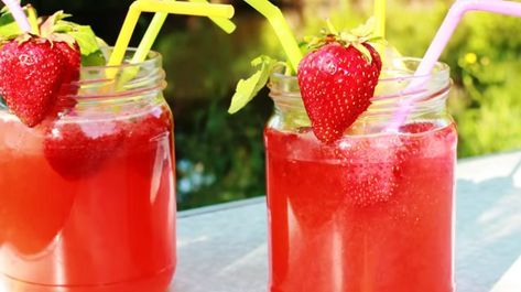 Вкусный, прохладительный напиток собственного приготовления - мой рецепт!!! Как хоть чуть спастись от жаркого лета? В жаркую погоду необходимо пить больше жидкости (вода с газом/без, несладкие черные и зеленые чаи) Прекрасным вариантом является приготовление легкого, прохладительного напитка. Для его приготовления нам понадобиться... Ингредиенты : 1.Минеральная вода - 500 миллилитров 2.Перетертое клубничное пюре (2-3 ложки) 3.Сок половинки лимона 4.Любимый ваш сироп (либо 1-2 чайные ложки сахара) 5.Мята либо мелисса - 6-10 листиков 6.Лед Все ингредиенты смешать между собой и остудить в холодильнике 1-2 часа (можно сразу делать большие объемы) и разлить по бутылкам.