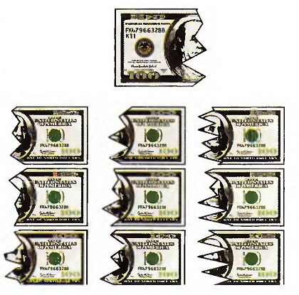 Найди две половинки разорванного доллара. Задача на внимательность.