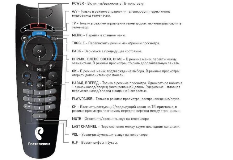 По дефолту пульт от TV-приставки Ростелеком выполняет исключительно функции управления только самой приставкой, то есть не может прибавлять звук на телевизоре, выключать или включать его. Он может только переключать каналы и вызывать меню.