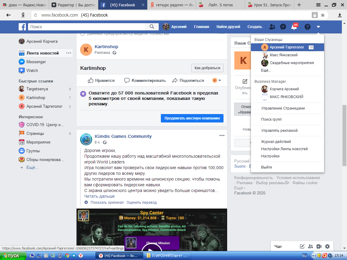 - В правом верхнем углу открываете небольшое меню, находите страницу, она у вас должна быть одна( если вы много раз пытались то может