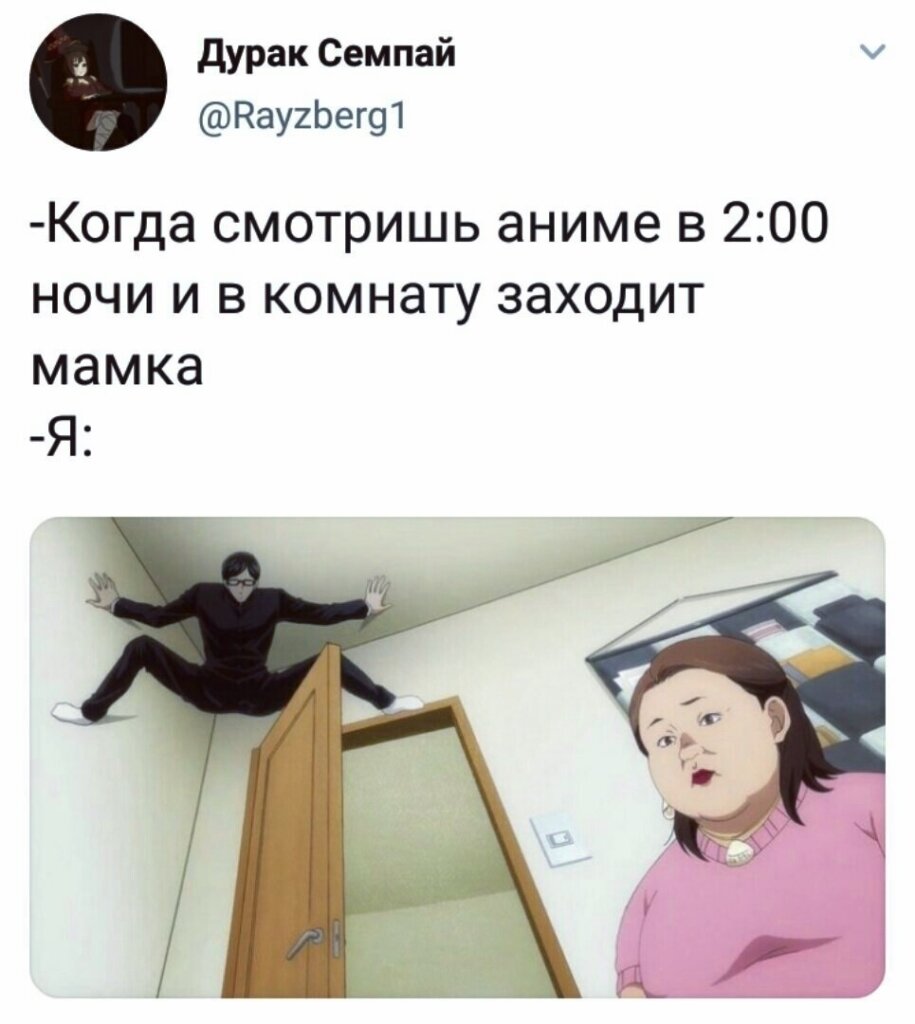 Доброго времени суток,дорогой читатель!В этой статье ты увидишь мемы из сети всемирной паутины - твоих любимых героев данных произведений. Если вы где-нибудь их уже видели - не ругайтесь,посмотрите как в первый раз и поугарайте снова) Вот вам несколько мемов из сети с моими комментариями: На самом деле мы пытаемся побыстрее его выключить,чтобы мать не подумала что мы не натуралы.(шутка) Ну тут и так всё понятно.Все любят пляжные эпизоды в аниме.Там же самый интересный сюжет)) А вот здесь даже как-то обидно,а не смешно(( Я с такой музычкой ходил в 8 классе по улице.Не советую вам так делать.Дома - можно. В этой статье собрались явно знающие всё про культуру Страны Восходящего Солнца)) Ну а дальше не очень хороший сценарий...Мыло не роняйте)) А теперь вспомни свою математичку и беги... А он по итоге поставил тебе 4 звезды....Жизнь тяжелая штука Тупо до слез...Но не нам)) ну а здесь абсолютно противоположный мем)) ---------------------------------------------------------------