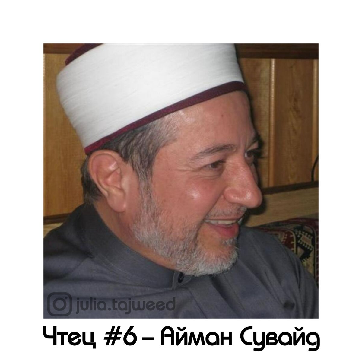 Айман Рушди Сувейд — (араб. أيمن بن رشدي سويد; родился 26 июня 1955 (65 лет), Дамаск, Сирия 🇸🇾) — исламский богослов, чтец Корана (кари), автор тв лекций по таджвиду. ⠀ *правильнее было бы писа́ть его фамилию СувАйд, через «А», т.к. буквы «Е» нет в арабском яз. Но почему-то большинство источников пишут его имя на русском именно через «Е». Что ж, так и оставим. ⠀ Является передатчиком 1️⃣0️⃣-ти чтений (кираат) Корана. Автор ТВ программы о таджвиде на канале Iqraa TV. Консультант по запоминанию Корана в Международном союзе мусульманских учёных. ⠀ В 12 лет он начал изучать Коран. Он запоминал по 3 ☝🏼 страницы в день. Закончил заучивание всего Корана в возрасте 15 лет. Затем он начал изучать науку таджвид. ⠀ Шейх Айман Сувайд - отец 7 детей (3 мальчиков и 4 девочек). ⠀ Его чтение Корана можно прослушать, напр, на сайте quranacademy.org или на том же YouTube. Оно достаточно медленное 〰️ и чёткое, специально для обучающихся 🎓. ⠀ Его академические степени 📜: ⠀ 1. Научный бакалавриат, Да