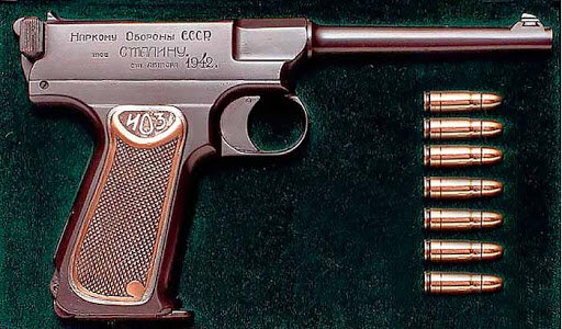 1. Пистолет Воеводина В результате изучения и обобщения опыта боевого применения личного оружия во время Великой Отечественной войны в 1945 г. был объявлен конкурс на разработку нового пистолета взамен ТТ. Пистолет должен был иметь калибр 7,65-мм (под патрон браунинга) или 9 мм и отличаться от существующею образца меньшими размерами и массой, повышением меткости стрельбы, надежности и безотказности действия в различных условиях эксплуатации при сохранении того же убойного действия пули. В проектировании пистолетов приняли участии Токарев, С. Г. Симонов, Коровин, Воеводин, Раков, Н. Ф. Макаров и др.
