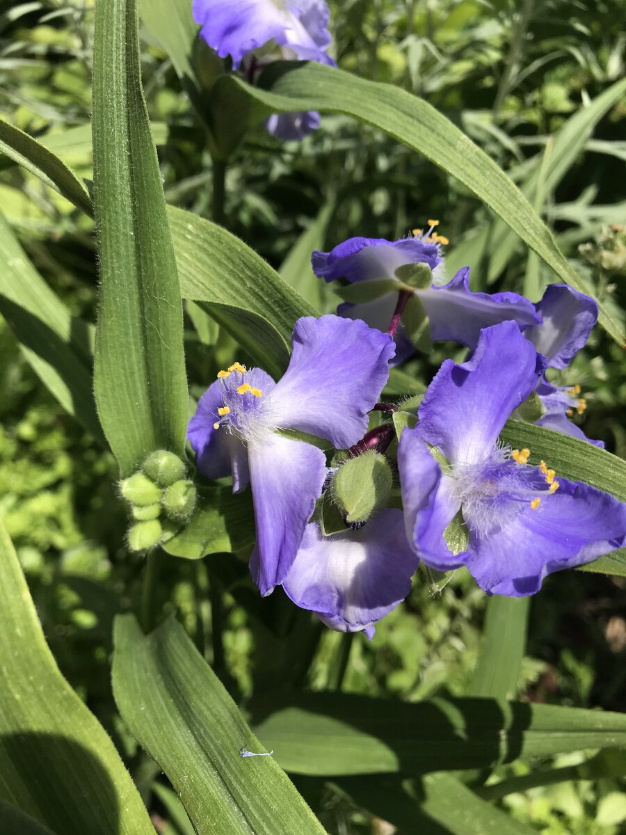 Приветствую всех на моем канале! У меня второй год цветет неизвестный доселе мне цветок. Он очень необычный: ярко-василькового цвета, цветков много и они расположены на тонкой ниточке, бутоны как будто свисают. Цветок раскрывается утром и закрывается на ночь. Я ничего похожего раньше не видела. В центре цветка пушок очень нежный в цвет лепесткам. Цветение довольно продолжительное. Нафотографировала и забила поиск по картинке. Оказалось, что это традесканция садовая Андерсона, гибридный сорт. Абсолютно не помню откуда она у меня взялась... Травянистое растение до 40 см в высоту, многолетнее. Любит солнце и влагу. Стандартные 3 подкормки за сезон, но если вы в летнее время будете рыхлить и удобрять почву каждые 3 недели, она отблагодарит вас пышным цветением с июня по август. Она действительно долго цветет. В пазухах листьев появляются все новые бутоны целыми гроздьями. Говорят, что каждый цветок живет 1 день. Впечатление такое, что это не так - куст довольно обильно покрыт соцветиями.