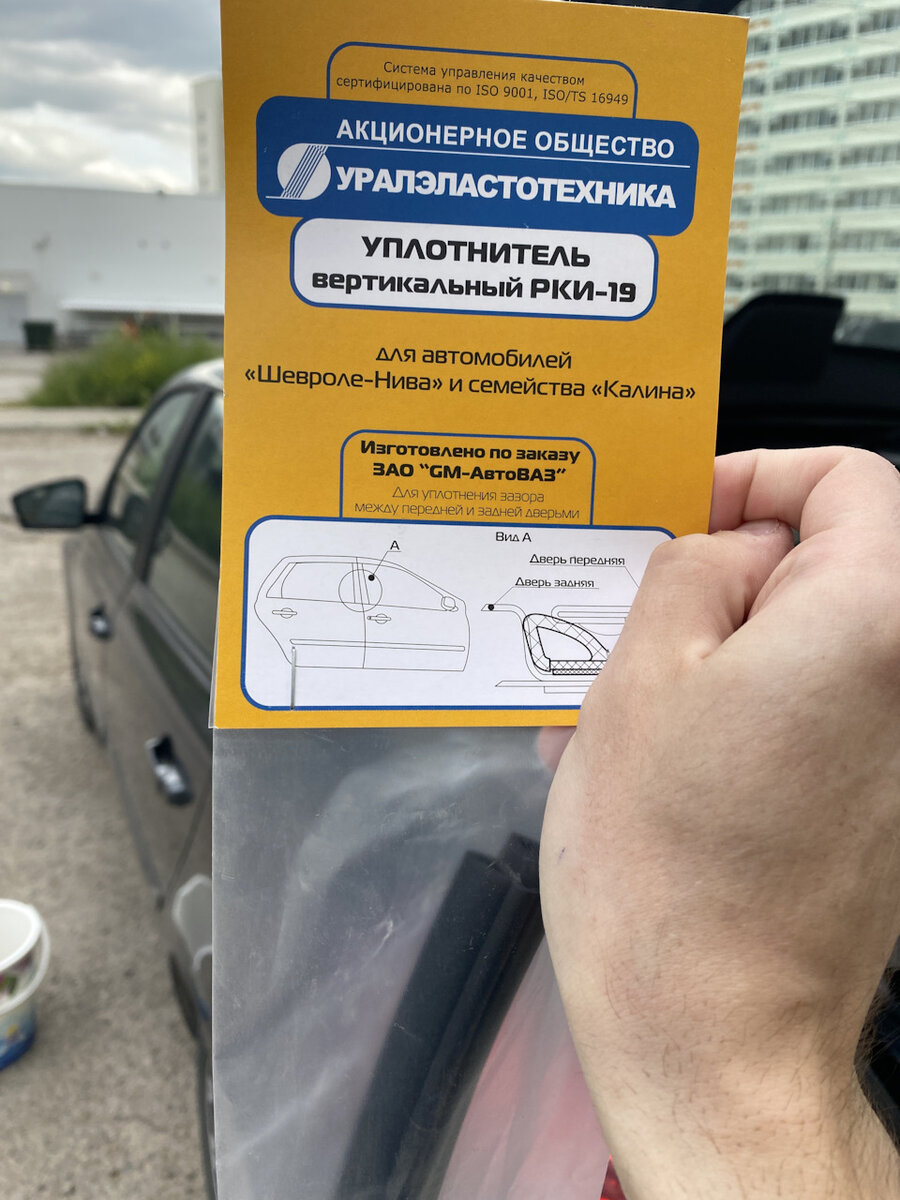 Здравствуйте Заказал неделю назад уплотнители на Гранту, и вот дошли руки их забрать и установить. Зачем они вообще нужны думаю, что объяснять не нужно, в конце концов они уже установлены с завода в комплектации люкс. Установка проста и не требует особых навыков автослесаря. Начал с установки вертикальных уплотнителей РКИ-19, они клеятся на двусторонний скотч на кромку задней двери. Предварительно моем, убираем грязь, после с помощью обезжиривателя смазываем поверхность, для лучшей адгезии. В качества обезжиривателя использовал бензин Галоша Смазываю Итоговая работа Настала очередь и уплотнителей на двери РГИ-135. Они, в отличии от вертикальных РКИ-19, не клеятся на двусторонний скотч, а вставляются в отверстия на двери и держатся на специальных защёлках, которые уже присутствуют на уплотнителе. Первым делом моем кромку двери, особенно снизу, у порогов. Далее нам нужно вытащить заводские заглушки, в которые будет крепиться уплотнитель. Некоторые их снимают пластиковыми картами, кто-то