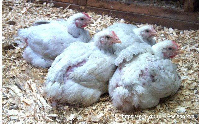 Расклев у бройлеров и кур разных пород