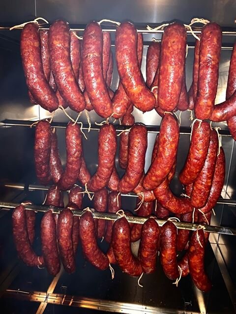 Домашние колбаски являются абсолютной классикой в стране в Моравии. Это не «диетическая» еда , но без них мы уже не можем представить приятный вечер с друзьями. Попробуйте тоже, в этом нет ничего сложного, вам просто нужно найти человека, готового наблюдать за вашей коптильней всю ночь. 🙂 Ингредиенты: Метод: Порежьте плечо и живот на более крупные кусочки и отшлифуйте на мельнице с помощью 8 мм диска. Измельчить говядину на тончайшем диске 3 мм. Обработайте говяжий фарш ледяной водой на муфте и добавьте его к остальной части мяса. Мы добавляем специи в полученную смесь так, чтобы на 1 кг смеси приходилось 20 г специй и 20 г соли. Мы правильно работаем с мясом и специями, пока все не будет хорошо смешано. Дайте готовой колбасной смеси остыть на холоде до следующего дня. На следующий день мы готовим кишечник. Замочите их в теплой воде, смешанной с уксусом, примерно на 30 минут. Мы также хорошо промываем кишечник. СОВЕТ: Вы можете в конечном итоге налить немного винного