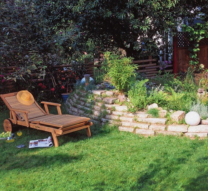 Всем привет и хорошего дня! Самый распространенный способ использования натурального камня для оживления ландшафта загородного участка - это "возведение" каменной стены. С ее помощью можно зонировать пространство или огородить дорожки, да все, что угодно! Тротуарные плиты и колун - это все, что потребуется для возведения такой стены в любом подходящем месте на вашем загородном участке. И займет это всего два-три выходных, не больше! 1. Стена из обломков плит Из обломков плит можно соорудить стены разной формы: мы выбрали ступенчатую стену , которую впоследствии можно озеленить. Для возведения прямой стены достаточно просто укладывать одну плитку на другую. Чтобы превратить плиту в рваный камень , нужно сильно ударить в середину плиты кувалдой или колуном! 1. Грунт выровнять, уложить первый слой плит, проверить горизонтальность. После каждого ряда плит сверху насыпают 2-3 см земли для устойчивости. 2. По мере возведения стены с обратной стороны постоянно подсыпайте землю, она станет опо