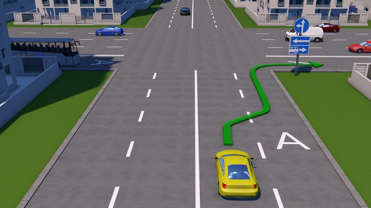 Хотя, более-менее опытный водитель сможет решить эту задачу на раз-два. Посмотрите на картинку: Главный герой - желтый автомобиль. Зеленой стрелкой обозначена будущая траектория движения этого автомобиля. Собственно, вопрос: можно ли повернуть по такой траектории? Ну и по традиции опрос: Проголосовали? Узнаем правильный ответ. Главная ошибка некоторых людей заключается в том, что они не берут во внимание все знаки, установленные перед перекрестком. Если смотреть на нижний знак, то поворот, естественно, разрешен: полоса для маршрутных ТС отделена от обычной полосы прерывистой линией разметки, т.е. для поворота направо нужно предварительно занять крайнее правое положение - перестроиться в специальную полосу (пункт 18.2 ПДД РФ). Но присмотревшись можн