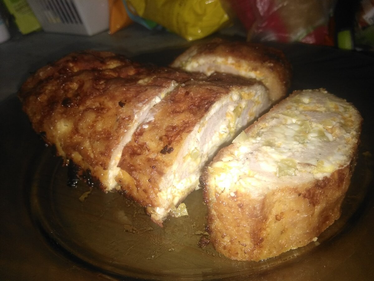 Ингредиенты: Делаем начинку: Нарезаем лук, морковь натирает на мелкой тёрке, обжариваем. Перец нарезаем мелко и добавляем к моркови с луком, немного солим и обжариваем еще 5 минут. Плавленные сырки натираем на крупной тёрке и добавляем в остывшую поджарку. Перейдем к приготовлению рулета. В фарш добавляем яйцо, солим, перчим. Выкладываем на пергаментную бумагу, равномерно распределяем. Выкладываем сверху начинку, смазываем майонезом. Аккуратно заворачиваем в рулет. Кладем в фольгу на противень. Ставим в духовку на 25 минут. После снимаем фольгу и запекаем ещё 20 минут до хрустящей корочки. Вкусный и сочный рулет готов! Приятного всем аппетита!