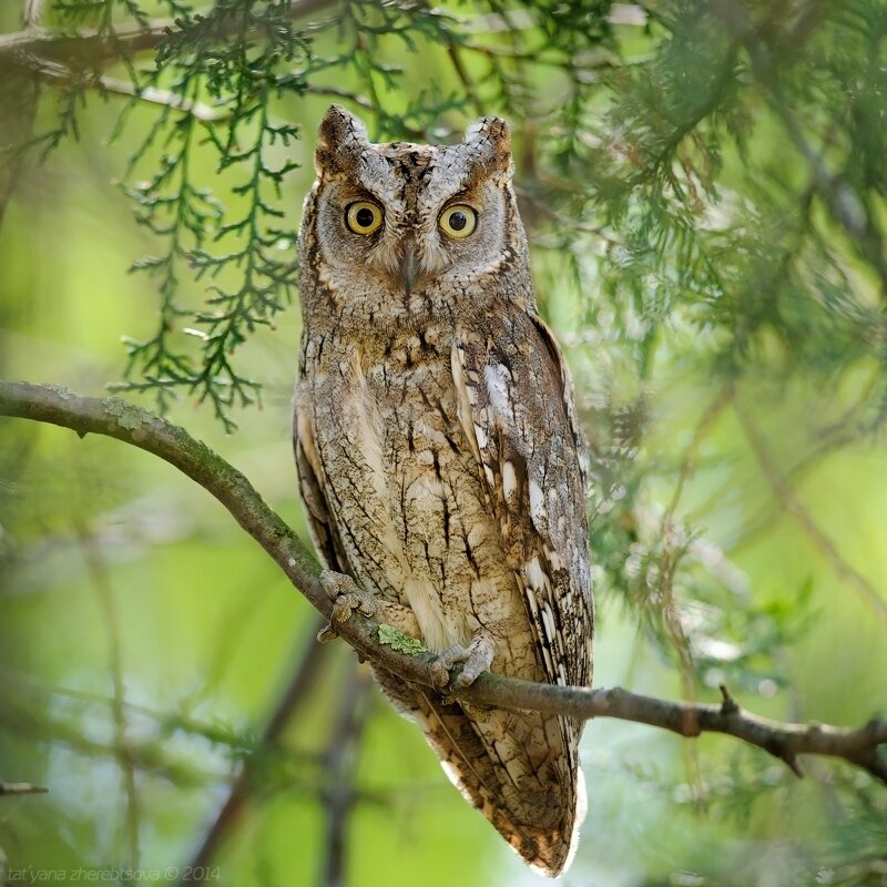 Итак, начнём с самых маленьких и обаятельных сов по имени сплюшка. Она же со́вка обыкновенная, она же зорька. Эта миниатюрная и насекомоядная сова прилетает в Крым чтобы вывести здесь свое потомство. Это происходит где-то в начале апреля. И их пребывание в Крыму длится аж до конца сентября. Затем они отлетают на зимовку в Африку.