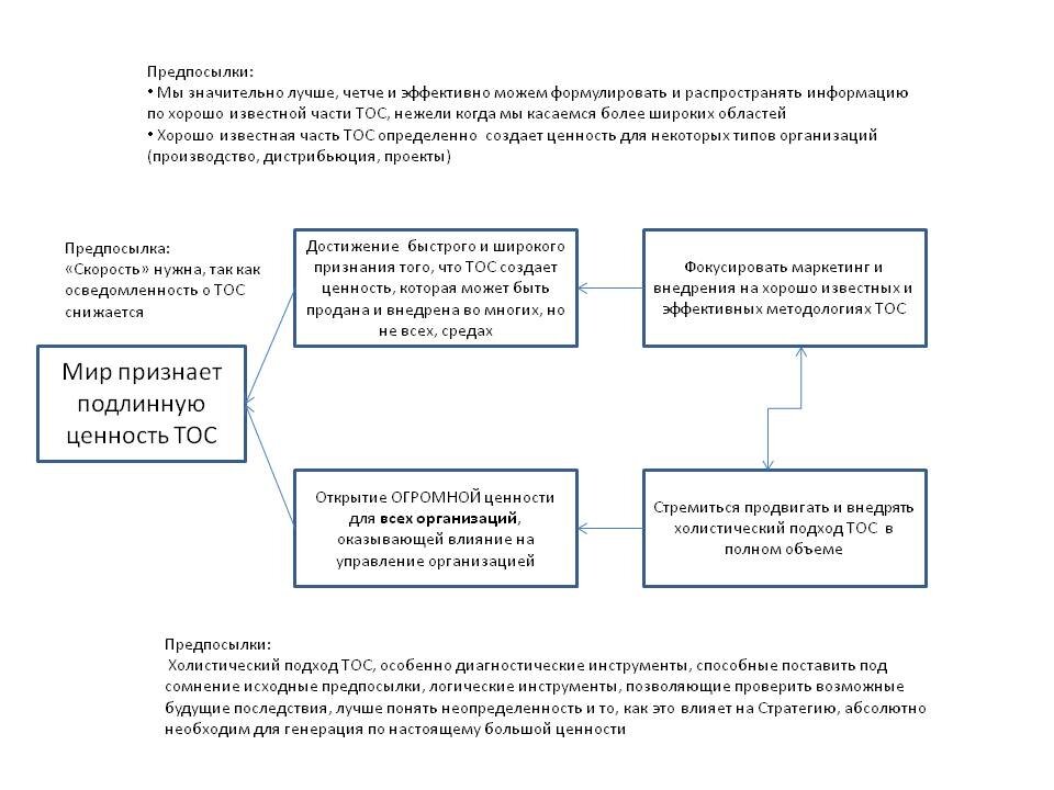 Препятствия в убеждении руководителей, которые знакомы с идеями ТОС, например: читателями книги Цель, значительно лучше преодолеваются, когда клиент видит большую организацию по настоящему опытных экспертов в ТОС, которые тесно сотрудничают для достижения наиболее эффективного ответа на второй вопрос.