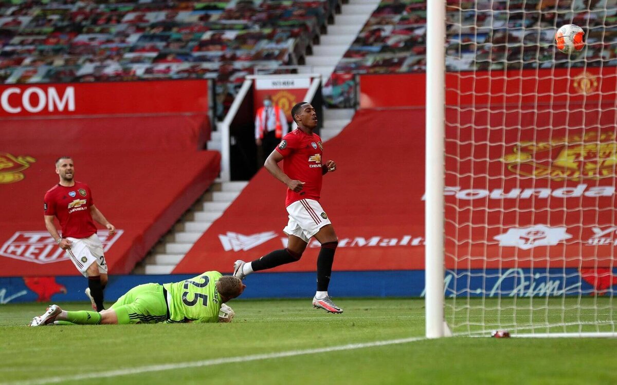 Второй мяч был забит в похожей манере, на этот раз благодаря индивидуальным действиям Уан-Биссаки, который обыграл на правом краю штрафной левого защитника Энду Стивенса и прострелил низом к линии вратарской, где Марсьяль замкнул эту передачу.