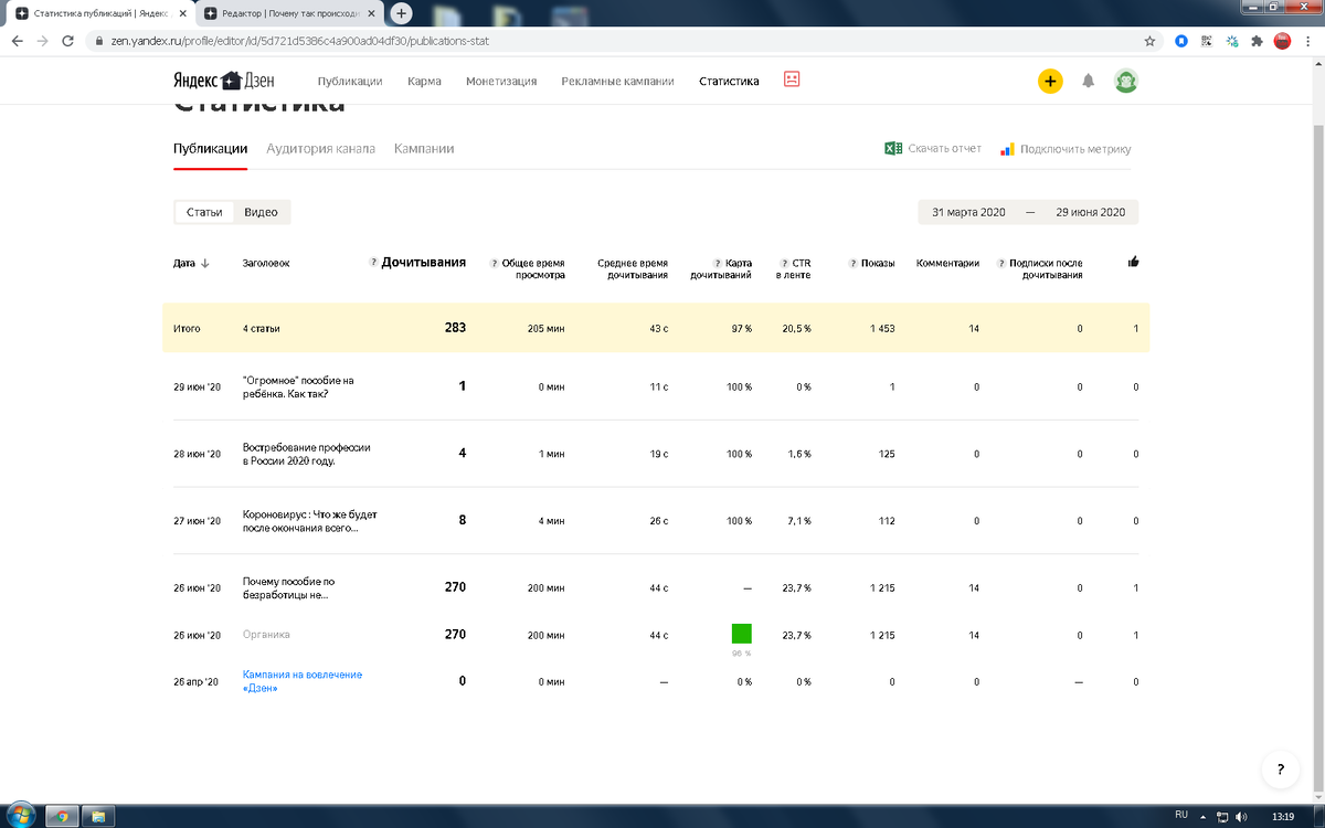 Сегодня обновилась карма,карма стала 20/100. Не знаю что это значит,не сильно вникал в это. Надеюсь что в дальнейшем разберусь,так же не понимаю как показывают статьи. Либо большое кол-во показов. Либо вообще нечего,с этим тоже не понятно нечего. Почитал много статей нечего не понял,как,чего и почему. Выслушаю все нарёки,и пожеланию,что и как лучше сделать.