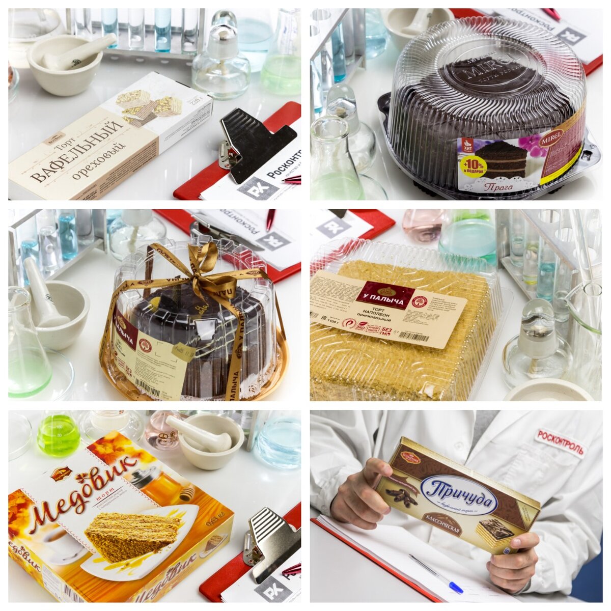 Даже скромный небольшой тортик сделает обыденное чаепитие праздничным, поможет отметить успешно завершенное дело. Но только при условии, что он вкусный, безопасный и качественный! Выбирайте один из вариантов, проверенных в лаборатории, - сделайте ваше чаепитие слаще! 1. Торт вафельный "ВкусВилл" "Ореховый" - безопасен по проверенным микробиологическим и физико-химическим показателям. Не выявлено содержание трансизомеров жирных кислот. Благоприятные органолептические свойства. Жирнокислотный состав близок к справочным значениям для кокосового масла, указанного в маркировке. 2. Торт Mirel "Прага" - соответствует требованиям безопасности по исследованным показателям. Удовлетворительные органолептические свойства. Не обнаружено подсластителей. 3. Торт "У Палыча" "Прага" - соответствует требованиям безопасности по исследованным показателям. Имеет благоприятные органолептические свойства. Жирнокислотный состав жиров, содержащихся в изделии соответствует молочному жиру с добавлением масла к