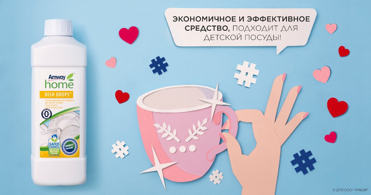 Высокоэффективное концентрированное средство обильно пенится и превосходно очищает посуду. Полностью смывается, не оставляя вредного осадка, благодаря компонентам на основе алоэ вера и периллы не раздражает кожу рук. Безопасно для мытья детской посуды, бутылочек, а также игрушек детей с первых дней жизни. Подходит для мытья фруктов/овощей. Перед тем как покупать концентрированную жидкость для мытья посуды DISH DROPS™, предлагаем вам узнать немного больше об одном из наиболее первых и успешных продуктов Amway, впервые выпущенном в 1963 году. Средство можно использовать для мытья изделий из хрусталя, серебра и тонкого фарфора. Благодаря стабильному уровню рН помогает справиться с неприятным запахом от кухонных губок, полотенец и водостока. Эффективно в холодной воде. Мягкое и безопасное средство – не содержит фосфатов, едких щелочей, кислот и хлорных отбеливателей, которые способны накапливаться и загрязнять окружающую среду. Дерматологически протестировано. Благодаря эфирным маслам в