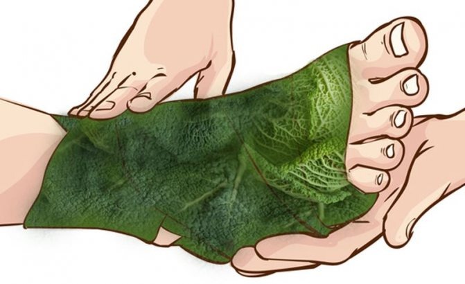 Листья растения необходимо прикладывать гладкой стороной на больной сустав. Можно перед этим помять их до появления сока, а затем смочить одеколоном. Это увеличит эффективность компресса. Лист прикладывается к больному месту, а сверху укутывается пищевой пленкой и теплой тканью.