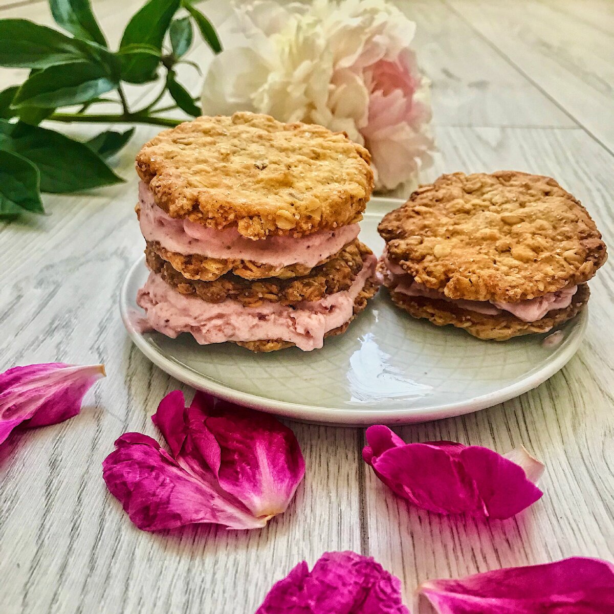 Какой любимый десерт летом, конечно, мороженое, которое любят не только дети, но и взрослые. Выходя с сыном на улицу, каждый раз он просит купить мороженое, но от покупного мороженого, от его сладости и состава, тихо приходишь в ужас. А зачем тратиться и покупать, если можно дома его приготовить и занимает это не так много времени. Так это не просто мороженое, а сэндвич: между двух овсяных печенек (всеми любимое) слой творожно-ягодного мороженого. Что может быть вкуснее!? ⠀ Для печенек: 🔸Мука - 100 гр 🔸Овсянка - 70 гр 🔸Сахар - 30 гр 🔸Яйцо - 1 шт 🔸Масло сливочное - 60 гр 🔸Соль - щепотка Для творожного мороженого: 🔸Творог мягкий - 180 гр 🔸Сливки 33-35% - 50 гр 🔸Банан - 150 гр 🔸Ягод (я взяла клубнику) - 180 гр ⠀⠀⠀⠀⠀Как приготовить⬇⠀⠀ ✔Смешиваем просеянную муку с солью, сахаром и овсянкой. ✔Добавляем яйцо и размягченное сливочное масло. Перемешиваем. ✔Скатываем шарики и на пергаменте сплющиваем, придавая форму печенья. ✔Ставим в разогретую духовку до 180С на 15-20 минут, до