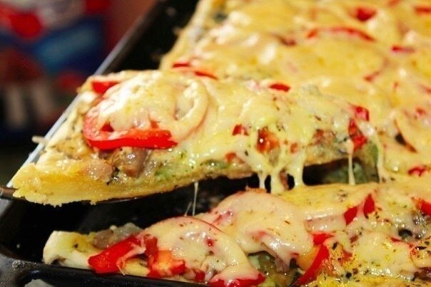 Не так давно нашёл этот рецепт у бабули в старой книге с рецептами, решил попробовать и чуть не потерял дар речи. Такую сочную и вкусную пиццу я не ел ещё не когда, вся семья была в восторге. Не буду вас томить, а быстрее идём в магазин за продуктами и начинаем её делать. И так, нам понадобиться: Способ приготовления: 1. Подготовьте ингредиенты. 2. Раскатайте тесто и поставьте в духовку на 15¬–20 минут. 3. Приготовление соуса. Можно приготовить заранее, но важно, чтобы к моменту заливания он был горячим, то есть потом его нужно будет нагреть. Смешайте ингредиенты (200 г сметаны, 1 ст. л. растительного масла, 1 ч. л. асафетиды, 1 ч. л. куркумы, 3 ст. ложки смеси «прованские травы») и варите 2–3 минуты. 4. Обжарьте кабачки. 5. Обжарьте баклажаны на растительном масле до золотистой корочки. 6. Достаньте из духовки основу и смажьте соусом. Сверху выложите кабачки и баклажаны. 7. Сверху посыпьте болгарским перцем. 8. Полейте соусом и поставьте в духовку на 5–7 минут. 9. Достаньте из духо