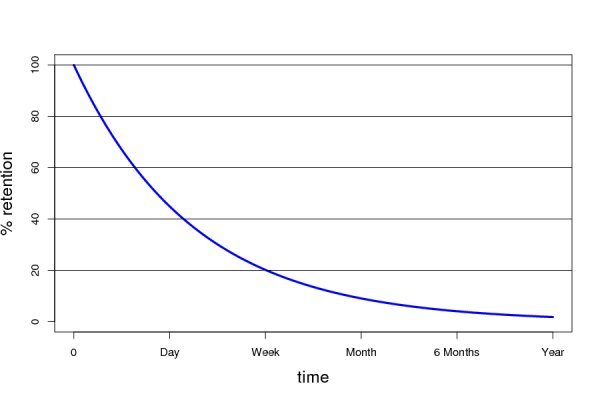То, как вы подключаете новых клиентов, задает тон вашим постоянным отношениям с ними. Эффективный онбординг увеличивает LTV (показатель пожизненной ценности) клиента, уменьшает отток пользователей и превращает новых пользователей в фанатов бренда. Вспомним как выглядит обычный график retention (коэффициента удержания) клиента:
