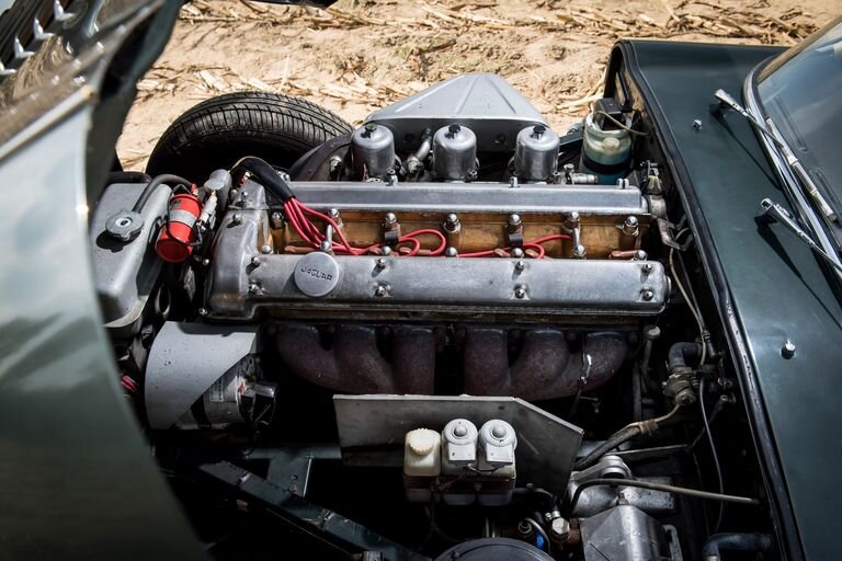 Е-тип позаимствовал свою 3,8-литровую рядную шестерку у Jaguar XK-150 S. Рулевое колесо в деревянной оправе с просверленными алюминиевыми спицами почти так же искусно, как и кузов.