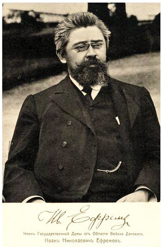 Потомок первого Наказного атамана Войска Донского Иван Николаевич Ефремов к началу ХХ века в казачьих Войсках уже не служил. Но, будучи хорошо оплачиваемым столичным юристом, являл собой облик классического «казака в пиджаке». С рождением эры российского парламентаризма, «петербургский казак» Иван Ефремов - бессменный депутат Государственной Думы царской России. Что первично было, что вторично: или потомок атаманов в кулуарах Таврического дворца был вовлечен в масонскую ложу? Или как раз «братья таинств» способствовали получению им мандата депутата Государственной Думы?