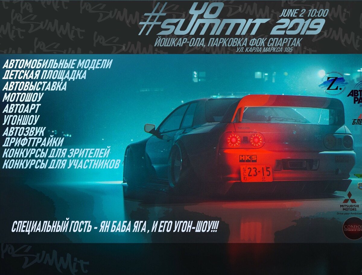 2 июня 2019 г. В Йошкар-Оле прошла автовыставка-фестиваль «YO SUMMIT». Автофестиваль YO SUMMIT 2019 г. проходит уже третий раз. Горожанам были представлены интересные автомобили, танцы городских коллективов, музыканты и не только. В этом году кроме основной выставки выступили паркуровцы, а также угон шоу от компаний УГОНА.НЕТ с подготовленным номером.
