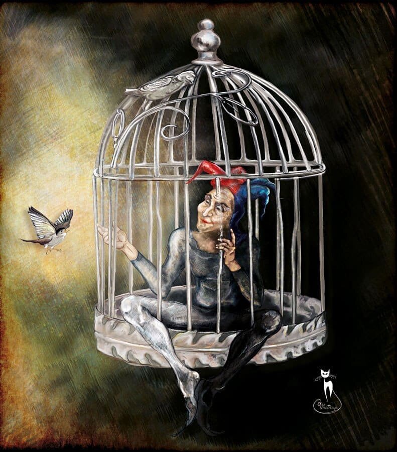 Шут повесил старенький колпак, Лысая башка трещит от глупых песен, Тяжкое призвание — "дурак", Врут, кто говорит, что смех полезен. Грим скрывает тысячи морщин, Сизый нос опух от табака и пьянства, Маленький и грустный арлекин, Дуралей устал от хулиганства... Смех зазвенел королевской монеткой, Маленький шут в позолоченной клетке, Пьяные сны, карусели и черти, Маленький шут самый грустный на свете. Завтра будет новый маскарад, Рыцари, турниры, фейерверк и танцы, Шут наденет красочный наряд, Будет бегать, прыгать и смеяться, Пощекотит ножку королю, Рассмешит принцессу безобразной пляской, Гаер подражает соловью, Но скрывает ворона под маской.. Смех зазвенел королевской монеткой, Маленький шут в позолоченной клетке, Пьяные сны, карусели и черти, Маленький шут самый грустный на свете. Смех зазвенел королевской монеткой, Маленький шут в позолоченной клетке, Пьяные сны, карусели и черти, Маленький шут самый грустный на свете. ©