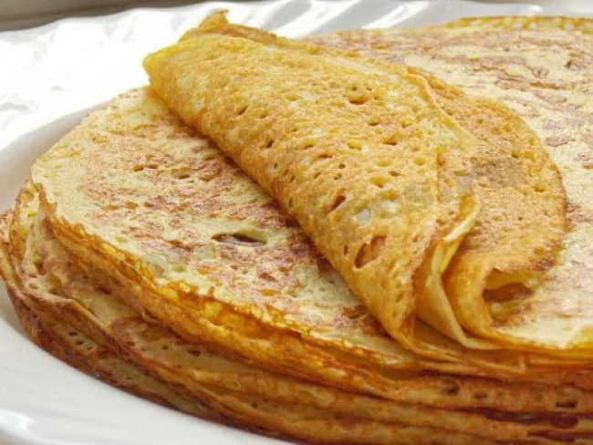 Ингредиенты: 1 стакана муки; 2 стакана воды; 50 г раст. масла; 1 ст. ложка сахара; 1/3 чайной ложки соды; соль по вкусу.