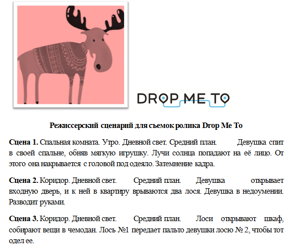 Литературный сценарий рекламного ролика Drop me To