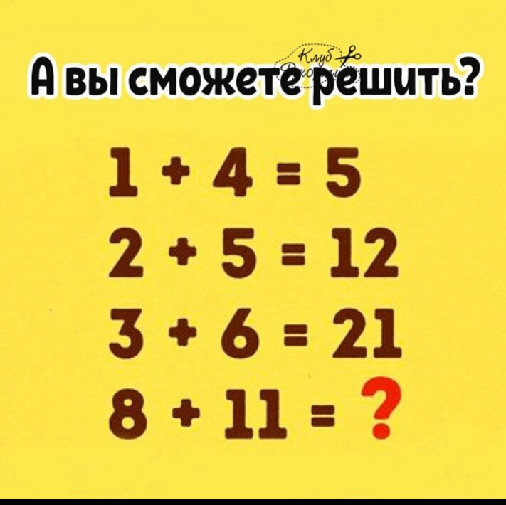 Добрый день дорогие читатели! Сегодня хочу поделиться с вами интересной загадкой на логику, все как всегда, нужно найти закономерность в решении предыдущих примеров и правильно решить последний. Вокруг этой задачки существует много споров в ответе объясню почему, вот задача попробуйте её решить: Ну что решили? Какой ответ у вас получился? 40 или 96? Получается что существует два варианта решения этой задачи. И как поняла кто использовал один вариант не может увидеть решение другого. Вот оба варианта: В первом варианте суммируются все цифры из уравнения и итоговая сумма предыдущего уравнения таким образом в последнем уравнении получается 40; И второй вариант решения где к первой цифре из уравнения нужно прибавить перемноженные между собой обе цифры из уравнения в итоге в последнем уравнении получается ответ 96. А каким вариантом решения пользовались вы? Лично я решила вторым вариантом, а первый даже не пришёл по началу в голову! Спасибо что заглянули на мой канал и нем