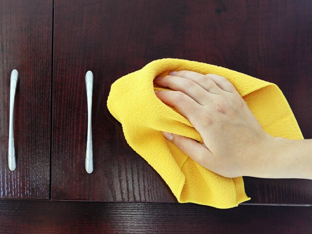 Мыть и чистить кухонный гарнитур, особенно фасады, нужно своевременно. Состаренные пятна удаляются намного сложнее и дольше. Мыть гарнитур нужно небольшим количеством воды, мягкой губкой или тряпкой. Из моющих средств использовать только не агрессивные, не содержащие в составе кислот, щелочей, хлора, растворителей и абразивных веществ.
