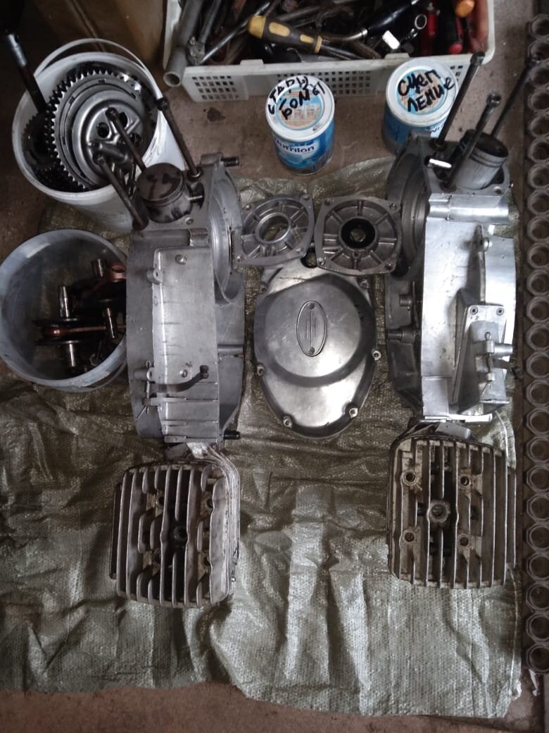 После отмывки соляркой всей плоскости двигателя первый этап работы был завершен! Было приобретено сразу масло м8 «АВТОЛ» 450р, новые свечи АД17 200р, набор сальников 250р, набор подшипников 1000р, набор прокладок 250р, набор болтов под шестигранник 150р, герметик красный ABRO и пошла сборка двигателя. Долго не думая, открыл YouTube, ввел “Сборка двигателя Юпитер 5» и по этим видео собирал движку. Проблемы возникли только со сборкой КПП, так как когда соединял половинки, кпп работать не хотела, разъединял то все работало. Посмотрев еще несколько видюшек, я нашел в чем проблема и все получилось хорошо. Установив на раму естественно я решил его завести. И вот что из этого вышло… Видео с запуском, можно посмотреть у меня на канале ДЗЕН