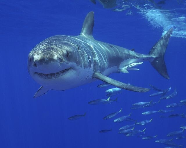 Белые акулы- самые большие акулы в мире.Их длинна может достигать 5-6 метров.Масса взрослой особи примерно 520 – 1 100 кг. Попытки удержать белую акулу в аквариуме всегда заканчивались плачевно.Обычно животное не доживало и до 3 дней. В 2004 году аквариум в заливе Монтерей стал единственным в мире, где смогли продержать больших белых акул дольше 16 дней. В качестве исключения, хищники продержались почти два месяца. Причины: Эти рыбы типичные хищники.В дикой природе они едят падаль только если умирают от голода. Белые акулы должны догонять и ловить свою добычу чтобы хорошо себя чувствовать. Это является не самым простым способом содержания хищной рыбы в аквариуме. Белые акулы должны постоянно плыть вперед чтобы вода,проходя сквозь жабры поставляла животному достаточно кислорода. Акула может достигать 6 метров в длину и обеспечить ее достаточным пространством не сможет ни один аквариум. При помещении акулы в замкнутое пространство особенно сильно страдает сверхчувствительные э