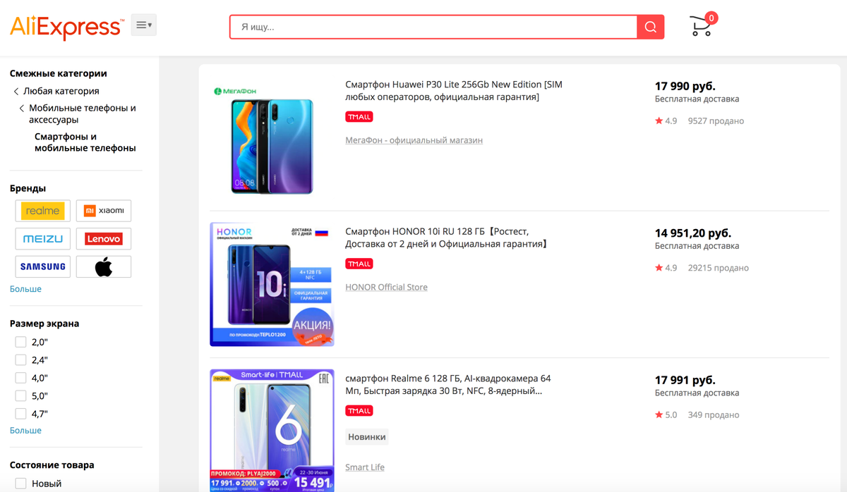 Качественным товар будет только известного бренда. Но цена будет почти такой же, как на российском рынке. Не стоит рисковать и покупать сотовый на АлиЭкспресс таких марок, о которых никто не слышал. Качество смартфонов зависит от технических характеристик. Если хочется приобрести телефон высокого качества, то уделите внимание товарам мировых брендов. Для этого сравните их технические характеристики с аналогичными моделями. Китайские дешёвые смартфоны неизвестных брендов не гарантируют высокий уровень качества. Самые популярные бренды на АлиЭкспресс: Huawei, Xiaomi, Lenovo.