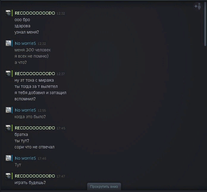 Пишет мне в стиме один крендель. В друзьях давно, но т.к. у меня 310 человек в друзьях, всех я не помню. Пишет, мол играли недавно вместе.