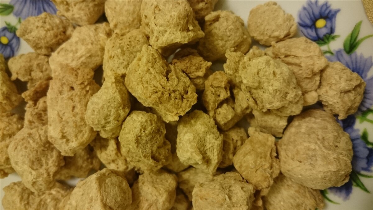 Соевое мясо – сухой продукт, отличающийся удобством и полезностью. Это продукт не требует холодильного хранения. Его можно легко приготовить дома, на даче, а также взять в путешествие. Готовить его быстро и не тяжело, необходимо только научиться правильно добавлять специи к мясу. Не зависимо от того, какое блюдо из соевого мяса вы собираетесь готовить, необходимо предварительно замочить мясо в горячей воде на 30 минут. После этого воду слить, мясо отжать, освободив от лишней влаги. При замачивании в воду необходимо добавить соевый соус, а также ваши любимые специи. В результате замачивания соевое мясо увеличивается в 2,5-3 раза и ничем не отличается от обычного мясного фарша, гуляша или шницеля. Далее в дело вступает фантазия, основанная на множестве рецептов. Не стоит забывать о том, что соевое мясо содержит очень мало жира, поэтому не удивляйтесь, что фарш имеет рассыпчатую консистенцию (котлеты из этого будет очень сложно приготовить). Гуляш и шницель могут показаться вам суховатым