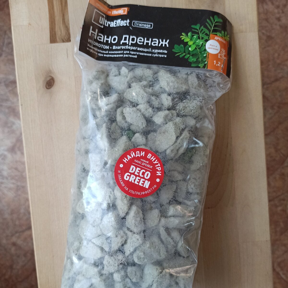 Свое знакомство с пеностеклом я начала с небольшой упаковки под названием "Нано Дренаж" от Ultra Effect EcoLine. Приобрела его в садовом отделе Ашана за 120 рублей (объем пакета 1,2 литра).