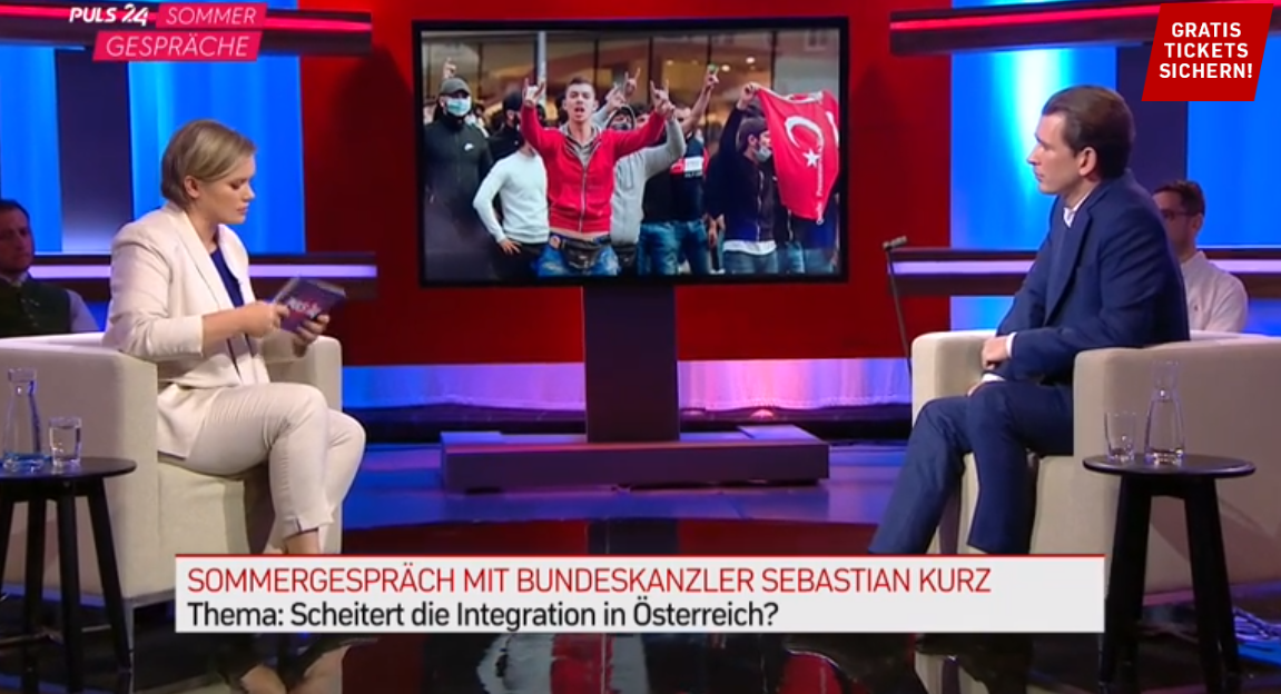 Канцлер убежден, что беспорядки с участием молодежи турецкого происхождения в Вене стали результатом провальной интеграционной политики в целом и красно-зеленого правительства Вены. Курц объяснил, что проблема вызвана наличием плотного скопления населения турецкого происхождения, где разговаривают только на турецком языке, проводят время в турецких клубах, закупаются только в турецких магазинах. Появление параллельного общества налицо.