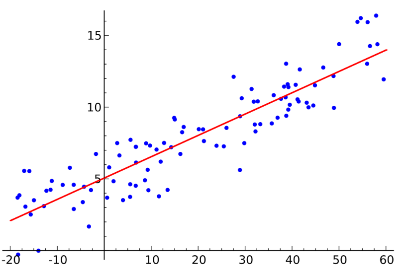 Цель состоит в том, чтобы найти оптимальную «линию регрессии» или линию / функцию, которая наилучшим образом соответствует данным.
