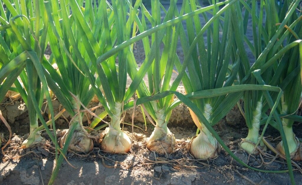 Чтобы лук не отставал в росте, его прикармливают рано утром или поздно вечером, или, если погода пасмурная, – днем. Удобрение вносят под каждый куст.