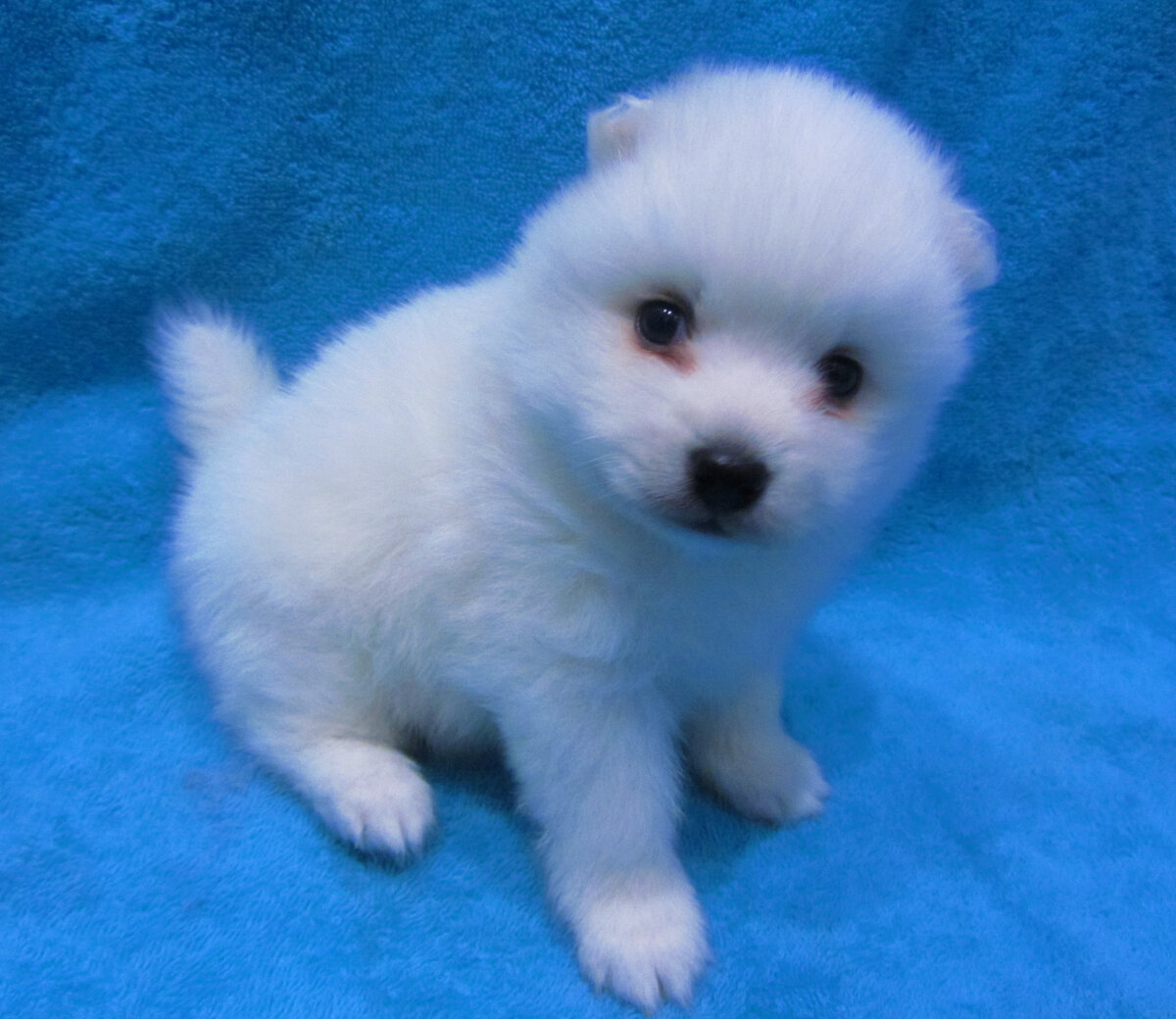 В месячном возрасте щенки японского шпица похожи на большой комок тополиного пуха. Именно тополиного, потому что только белый цвет шерсти, другого у этой породы не бывает.