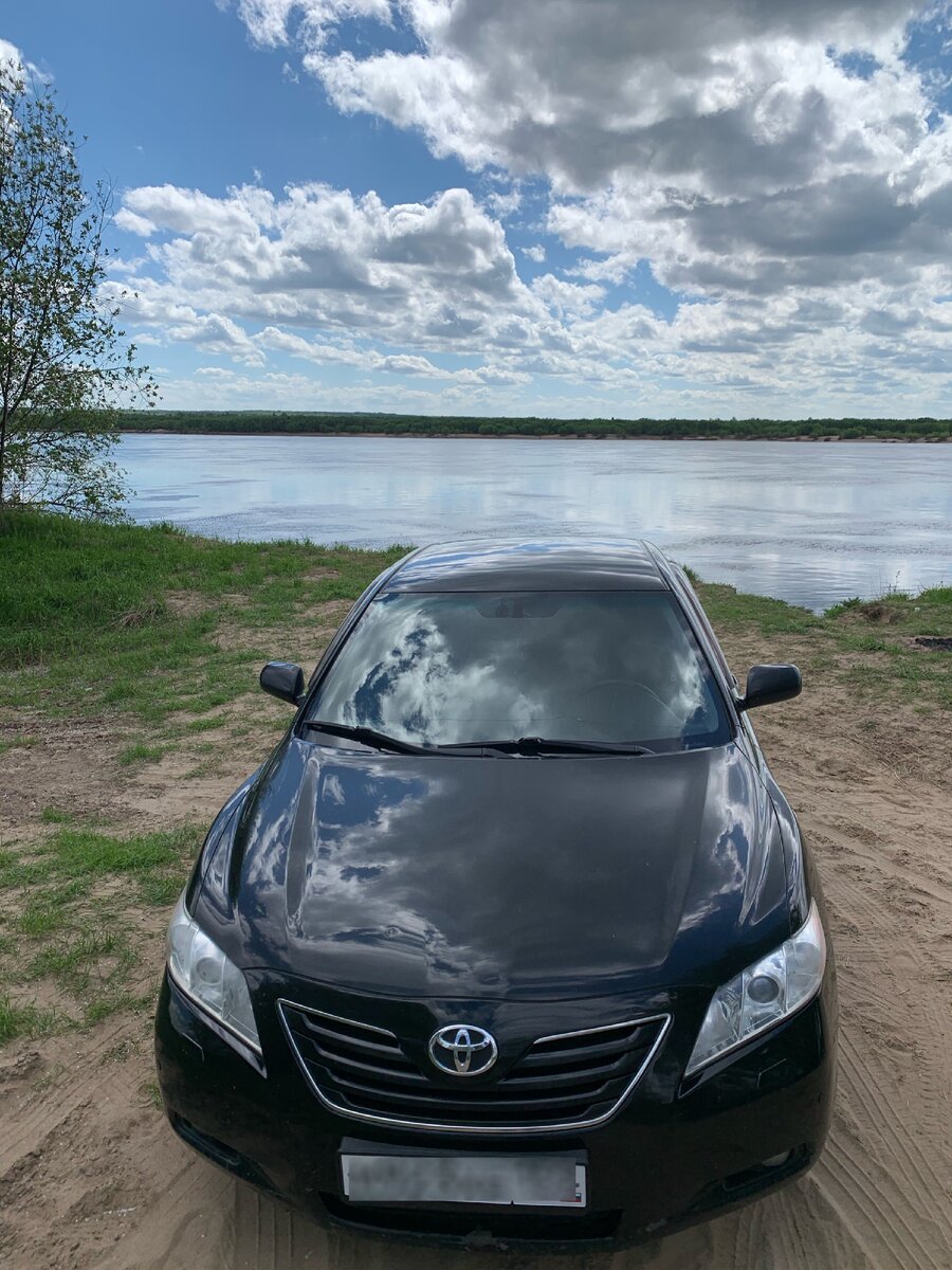 Про эту машину говорят, что ее не купить. Хоть на дорогах их и полно, но найти живую сороковку с одним хозяином и не скрученным пробегом очень сложно. Мне повезло. Покупал Камри с пробегом в 244 тысячи. Машина 2007 года выпуска с этого времени в одних руках. Имеется вся история обслуживания, поэтому уверен, что пробег родной и не подвергался корректировке. Мотор 2,4 литра, коробка автомат. Комплектация самая максимальная R4: кожаный салон, круиз контроль, штатный ксенон, двух-зонный климат контроль. Так как машине 13 лет присутствуют эксплуатационные дефекты, как по кузову так и по салону. Камри была в двух незначительных ДТП. После первого ДТП первый хозяин не стал ремонтировать водительскую дверь и поменял ее на новую. Второе ДТП это притерлось пассажирской двери. Так как в России много снега страдают бампера. Прежний хозяин позаботился и поменял штатную мультимедийную систему. Появилась камера заднего вида, навигатор и возможность прослушивания музыки с флешки и по блютуз. Перед по