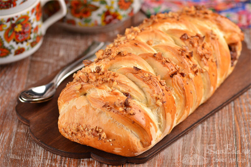 14. За счет того, что тесто дрожжевое и хорошо поднимается, пирог внутри полностью не заполняется начинкой, но со всех сторон внутри покрыт и пропитан шоколадом. Тесто слоеное, пышное и вкусное. Плюс шоколадная начинка. Это очень вкусно.