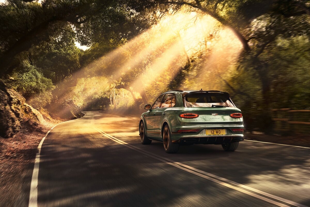 Фонари интегрированы в новую, широкую крышку багажного отсека. Номерной знак расположился ниже к бамперу, уступив место для рельефной надписи Bentley. Разделенные спортивные патрубки выхлопных труб получили овальную форму и стали немного больше, перекликаясь по дизайну с задними фонарями, а новый удлиненный спойлер на крыше зрительно увеличивает длину Bentayga, придавая ему более атлетичный вид.