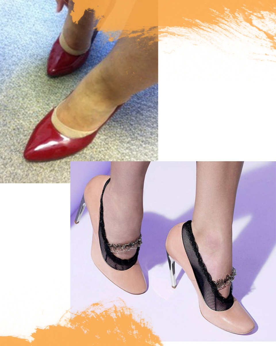 Особенно ужасно смотрится обувь с открытым носом и торчащими оттуда пальцами в подследниках. Это безвкусно и смотрится ужасно. Балетки, туфли и т.д. нужно носить на голую ногу, либо с такими следками, которые будут незаметны для окружающих. Также в обувных магазинах сейчас огромное количество специальных стиков, растяжителей и т.п., чтобы избежать натирания обуви.