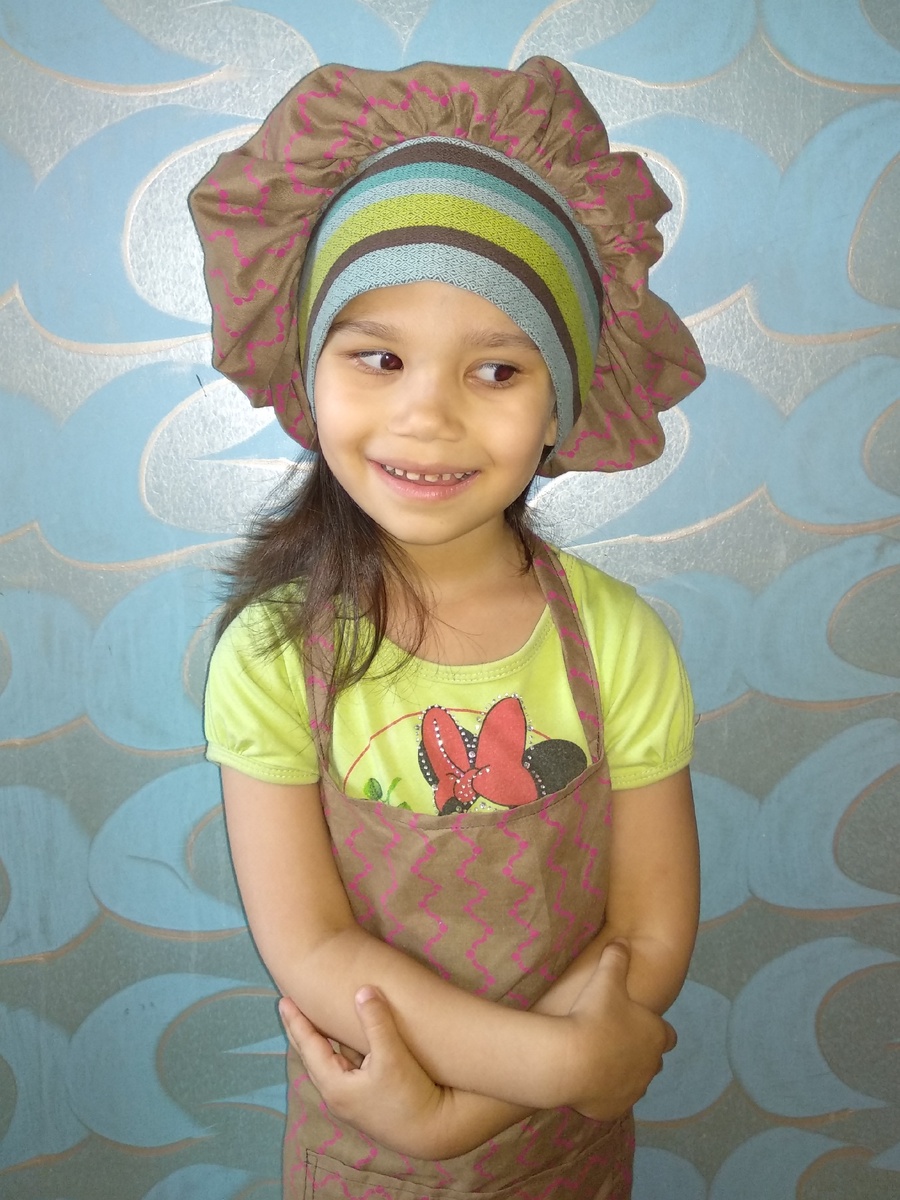 Многие маленькие дети любят готовить вместе с родителями и конечно моя дочь и её подруги не исключение. И чтобы одежда юных поварят не так подвергалась загрязнениям мы решили осуществить проект по пошиву фартуков и шапочек повара. Пришлось шить два одинаковых комплекта, так как моя дочь так захотела, ей нужно было чтобы у неё с подругой были одинаковые фартуки. В комплекты входило 2 фартука из разных тканей и шапочка повара. На моей дочери коричневый фартук на этом фото. А на её подруге в полоску. Одежда наших поварят теперь точно будет меньше страдать во время готовки. Кроме того часть использованных тканей это покрывало, которое уже не планировалось использовать по назначению. Вообщем об осознанном использовании материальных ресурсов в этом проекте мы тоже не забыли. Детки были рады новым фартучкам! А я удовлетворена результатами своей работы. Поставьте пальчик вверх если вам тоже понравилось то что я сделала!